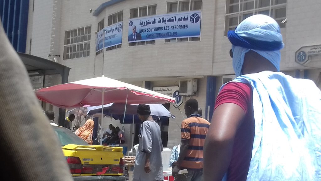De la Banque pour le Commerce et l’Industrie (BCI), à la Banque Mauritanienne pour le Commerce International (BMCI) en passant par la Banque des Financement Islamiques (BFI), tous « votent OUI ». Cette multitude de banderoles géantes, visibles sur les façades d’institutions financières, fait tiquer un passant. Immobile devant la BCI, il s’exclame « ceci me rappelle drôlement la banderole de la fédération des acteurs de la pêche et du « vote des poissons ».
