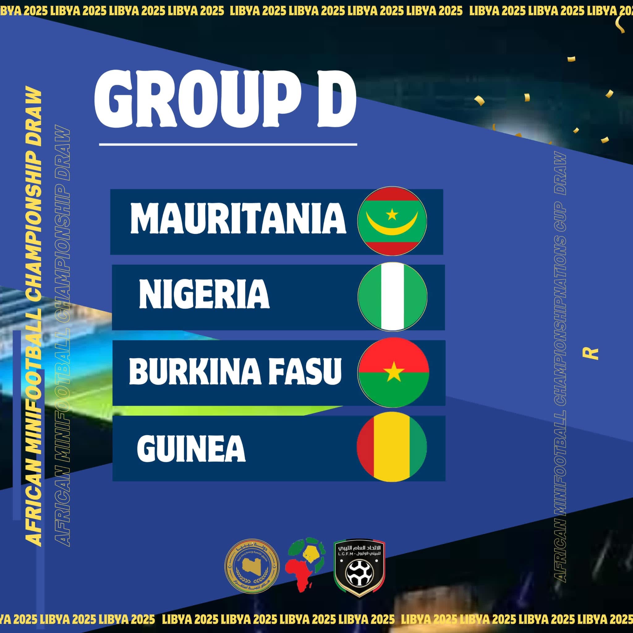 Derna, 15 décembre 2024 (LeReflet) – La Mauritanie a été placée dans le groupe D de la Coupe d’Afrique 2025 de Minifootball, selon le tirage au sort qui s’est déroulé dimanche soir à Derna, en Libye.