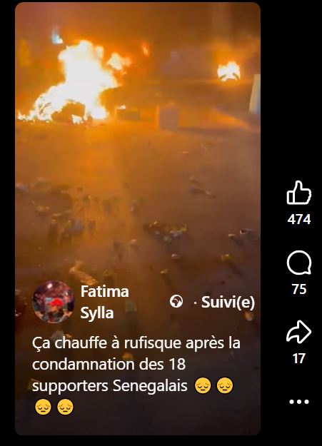 Capture d’écran vidéo diffusée par Fatima Sylla | Protestation contre la condamnation de 18 supporteurs sénégalais aux Maroc.