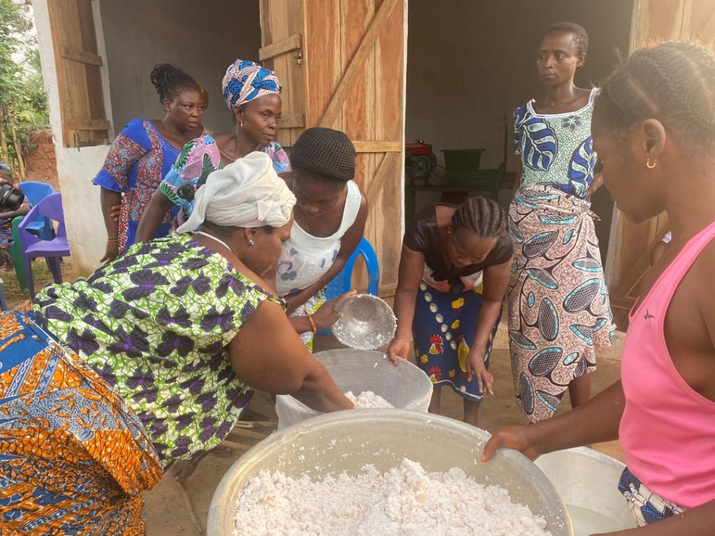 Une association de femmes regroupant plus de dix villages a bénéficié d’un fonds de roulement et de machines pour la transformation de la noix de coco et de l’huile de coco. Mme Blé Charlotte, membre de l’association, témoigne : « Grâce à WACA, nous avons amélioré notre organisation et notre productivité. Avant, nous achetions les noix, mais maintenant, nous les plantons et les utilisons pour la transformation en huile. »